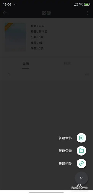3. 完成填写后,即可着手写作。书籍相关信息在任何时候都能够进行修改。点击右下角的加号,便能添加章节。