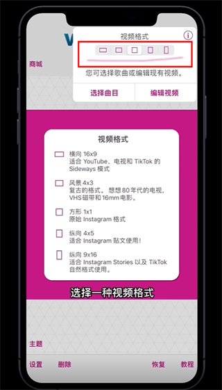 2、选择好视频格式(格式一旦确认创建,是无法更改的)