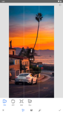 视角:在安卓手机中叫做“视角”,苹果手机中叫做“透视”。它主要是调整画面的水平和倾斜度的,一般用来处理拍得不水平的地平线,歪斜的建筑楼房类照片。风光照片中,一般都会有地平线、海平面、天际线等水平线条,这些线条如果在前期拍摄时手机没有端平,拍出来就是倾斜的,需要使用透视工具调整水平。
