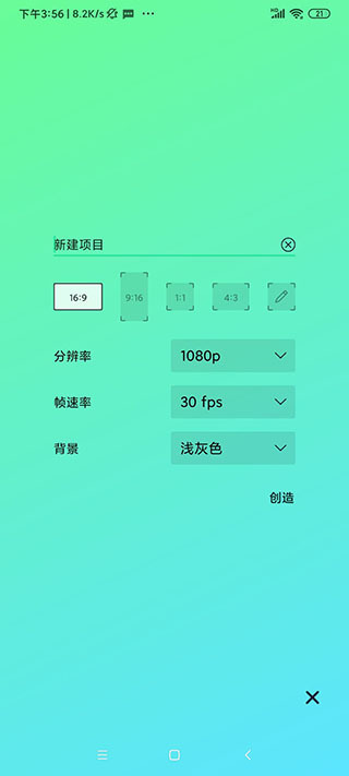 4、可以设置项目名称、宽高比例、分辨率、帧速率、背景颜色;