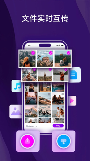 达成了手机与电脑文件的无线相互传输及共享,助你摆脱恼人的数据线与迟缓的蓝牙传输。
