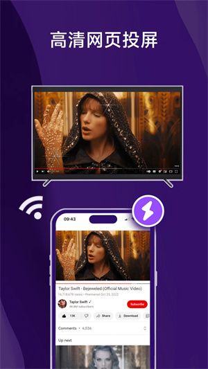 3、视频投屏:在连接电视之后,可以将手机视频极速投影到电视屏幕上,手机小视频立马变身大荧幕电影,与家人在家轻享大屏,让快乐加倍;