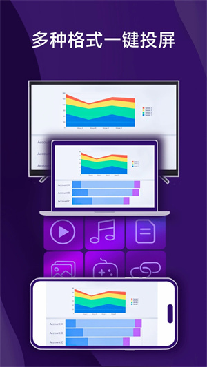 支持多端互投,轻松实现手机投屏电视、手机投屏电脑、电脑投屏电视等投屏方式。支持多画质投屏,“标清”、“高清”、“超清”任由您选择!