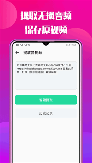 点击过后我们需要复制需要提取音频的分享链接然后粘贴在上面的输入框,然后再点击智能提取就可以了。