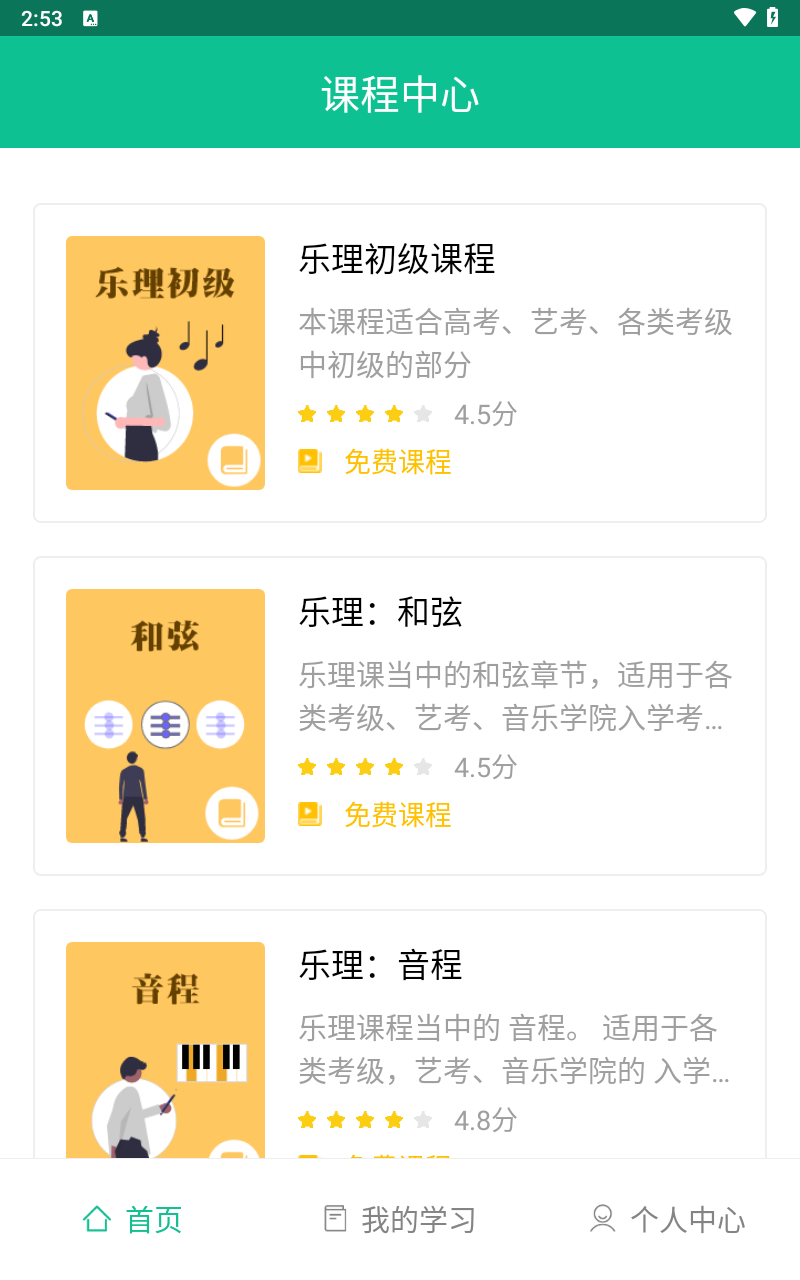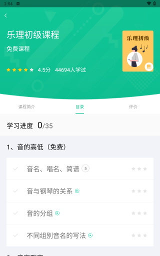 1、视唱课 精准识别音准与节奏,实时打分,唱准与否即时反馈,助你快速调整,进步显著。