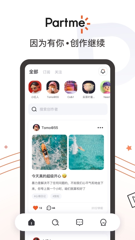 Partme app,这是一个专门为粉丝与创作者打造的交流平台。在这里,创作者能够在线发布个人作品,粉丝可以一键订阅自己喜爱的创作者,还能在线进行评价、发表个人观点,从而及时了解创作者的动态。