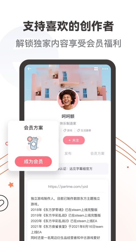 通过为粉丝们提供会员资格,粉丝能够成为他们钟爱的创作的积极参与者与支持者。