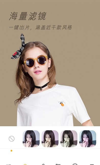 【滤镜模块】拥有多款高品质滤镜,既适用于实时相机拍摄,也能用于导入图片处理,轻松点击,即可生成海报效果。