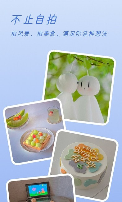 【拍照相机】这款相机超萌又超好玩!它专为拍摄人像定制了一键点拍功能,还能 3 秒自动拍摄,亮度也能随心调节。此外,相机里有超多美萌的动效贴纸,使用后能让你瞬间变身可爱焦点。