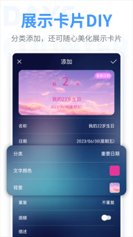 1. 【个性换肤】拥有多样的纪念日背景,支持对纪念日背景进行自定义设置。
