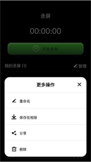 4、在页面可以查看我的录屏并对其进行重命名、保存或者其他操作。