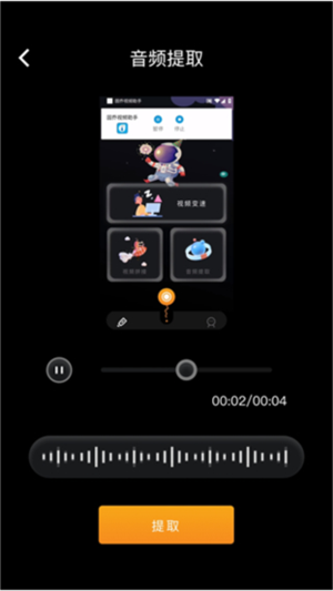 7、音频提取功能也很简单,导入素材后点击提取就可以啦!