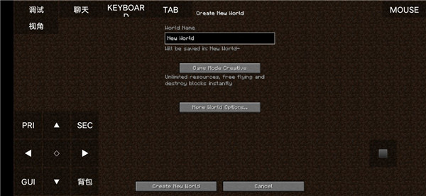 7、进入该界面后,选择你要玩的游戏模式和名称,然后点击下方的“create new world”。