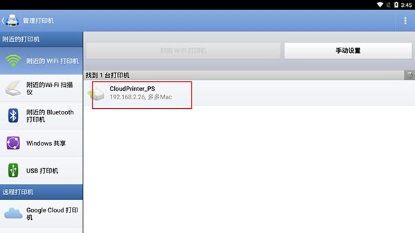 4、选择打印机类型,选择”附近的WiFi打印机、附近的WiFi扫描仪、附近的蓝牙打印机“中的一种,这里我们选择WiFi打印机,软件将自动扫描周边的WiFi打印机,点击即可连接到打印机。