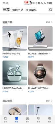 2、精选版块则为“购物频道”,可以购买华为旗下的各种产品,“周边精品”有四款智选产品