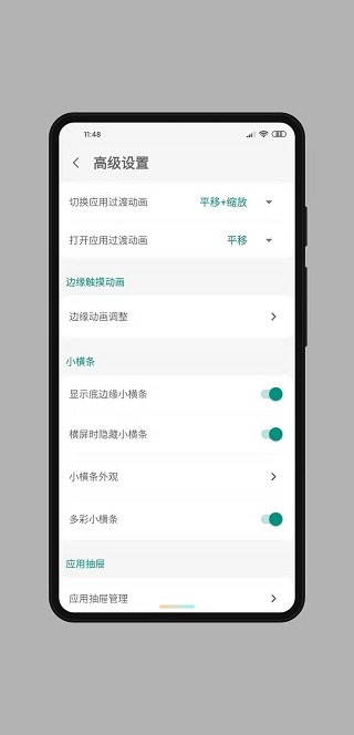 ⑷长按并滑动手势:在默许模式下,长按边缘触发区振动后再滑动触发相应功能。在抬手触发模式下,可以先滑动后不松手等振动后抬手触发相应功能,也可以和默认模式一样操作。可通过设置内的“长按并滑动超时”调整长按并滑动手势的长按时间。
