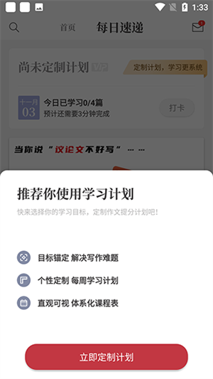 5、回到首页的每日速递选项,可以定制自己的学习计划。