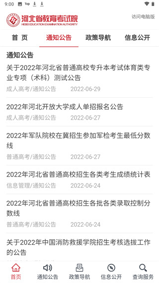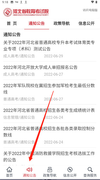 2、用户点击“通知公告”,即可查看最新的各类政策公告。