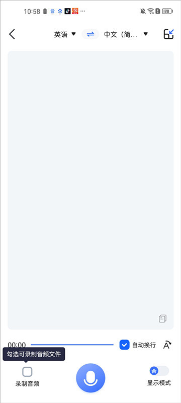 2. 选用同声传译模式,在翻译的同时进行录音,便于用户后续查询。