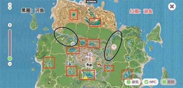 ps:地图上除了大海和黑红圈外,其他水域大多是瀑布或者溪流景观,是没有钓鱼点的。