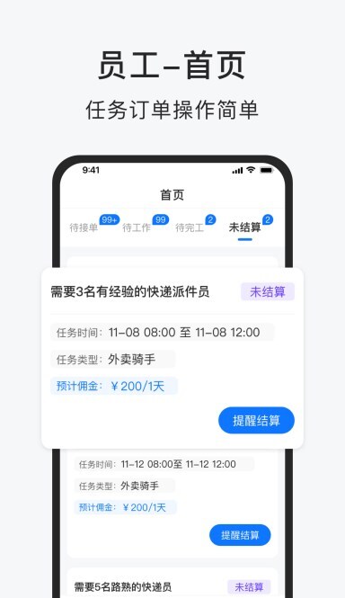 可开展员工管理、佣金发放、任务管理、发票管理以及进度管理等工作。