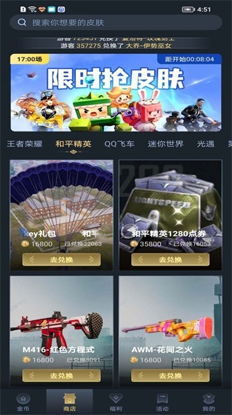 1. 在此处能够免费领取更多全新皮肤,各式各样的福利也都能轻松兑换。