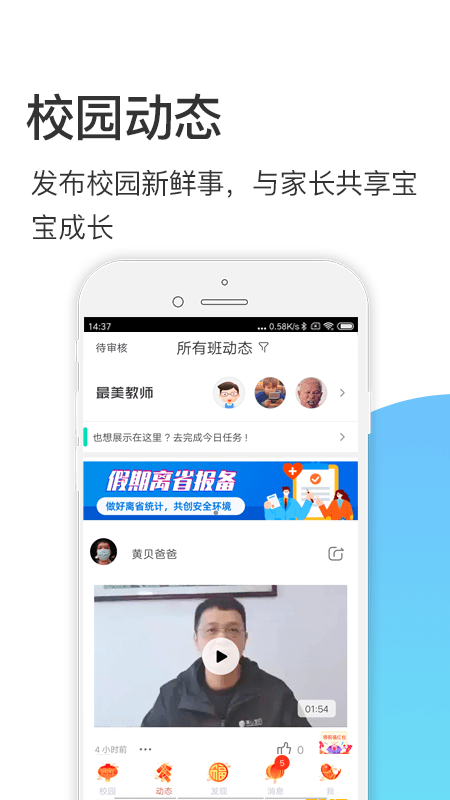 掌心宝贝园丁版软件,让家长与老师沟通更便捷。家长借此能了解孩子在校园的学习与生活情况,同时老师也可通过上传学生日常表现,实现对学生更好的管理。这既让家长安心,又丰富了学生生活,还使幼儿园工作更加透明、高效。