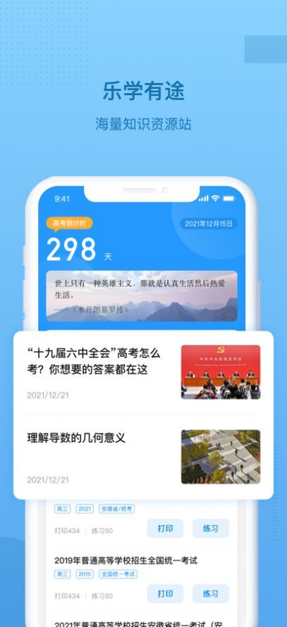 乐学有途是一款学习教育类软件,它拥有各类阅读资料与丰富的课程信息。用户能够随时查看各院校的简介,享受一站式教学模式。平台配备专业讲师与优秀的师资团队,随时在线为用户提供帮助。此外,该平台还关注高考相关资讯信息,设有倒计时时间提醒,在上面学习简单又便捷。