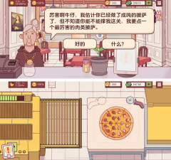 2、游戏的开始会有傲娇的隔壁披萨店老板来教你如何制作披萨,之后的制作过程就需要你自己完成啦。