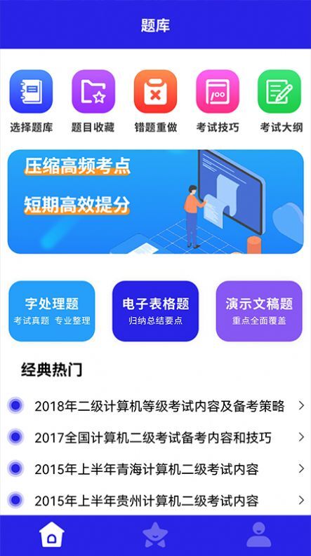 这款软件的题库极为齐全,能免费刷题。不仅如此,每天都会更新各类视频,画质十分清晰。在训练时,能让你知晓更多二级知识。刷题过程中,你还会接触到大量题型,进而了解更多做题方法。