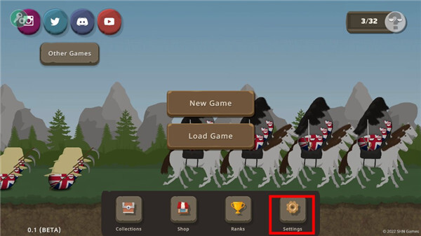1、首先打开波兰球之战游戏,点击下方设置按钮;