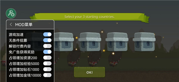 此版本已被网络大神搞定,游戏功能涵盖游戏加速、无条件招募、解锁付费内容、获取奖励、占领增加200资源等诸多修改功能,能给玩家带来更棒的游戏体验!