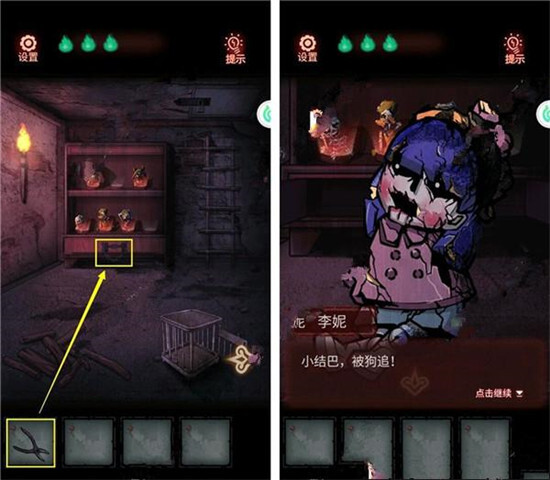 11、拿【钳子】把铁链剪断,打开柜子,捡起【娃娃】。
