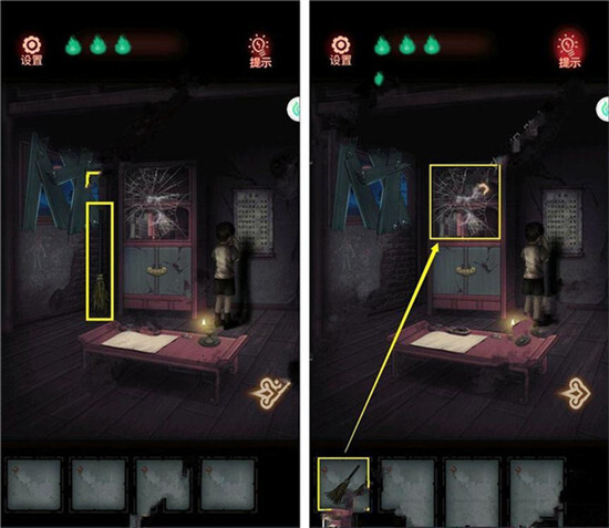 1、拾取【扫把】,用【扫把】清除蜘蛛网。