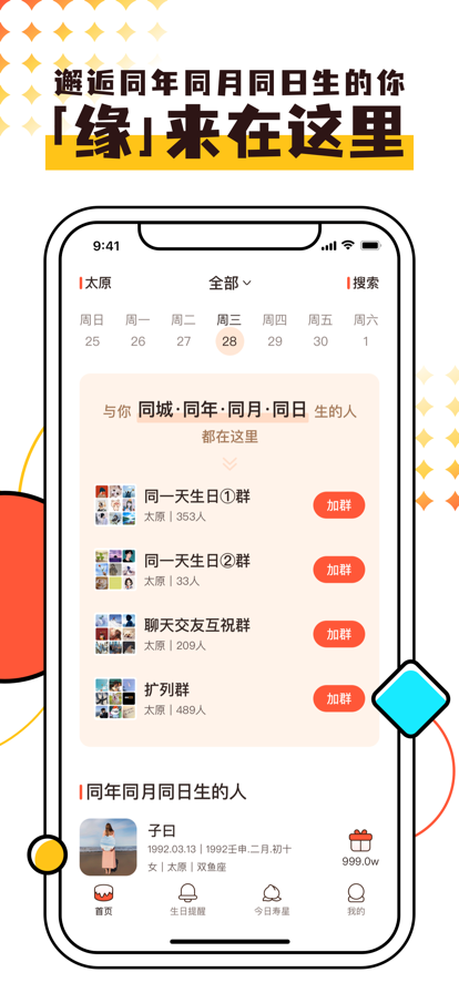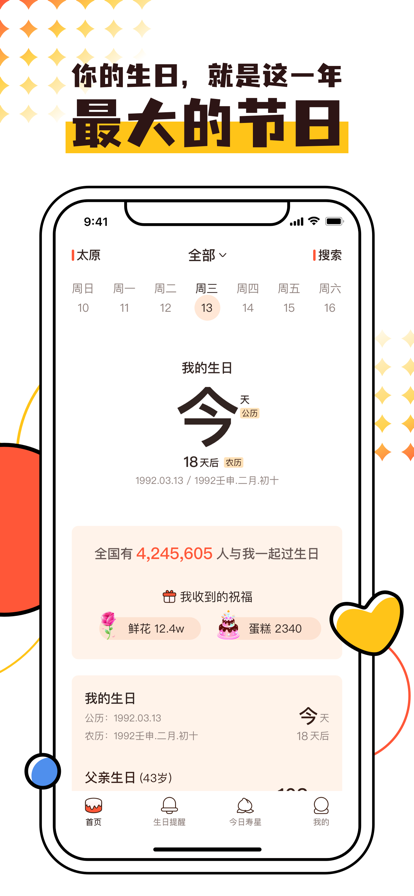 2. 不但能使用户与更多同日生日的人成为好友,还能够助力用户获得更多生日祝福。