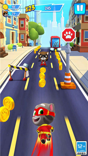 《汤姆猫英雄跑酷》是一款3D卡通休闲酷跑手游,该游戏由“会说话的汤姆猫家族”原班人马打造,汤姆猫和安吉拉为了解救家族伙伴,需要不断完成任务,收集金币,击败浣熊BOSS,就能进入下一个场景地图。