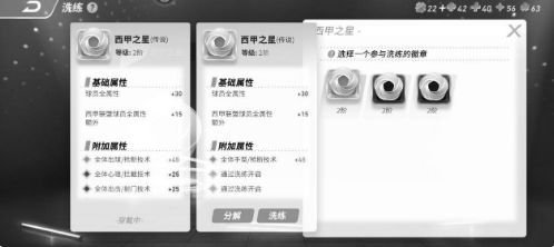徽章除了基本的属性之外,还可以通过培养和洗炼来增强徽章的加成效果。选择一个参与洗炼的徽章,勾选要洗炼到当前佩戴徽章的属性,然后勾选要替换的属性,最后点击洗炼,完成属性的替换。徽章培养需要消耗四叶草,四叶草可以在联盟签到、联盟活动和联盟商店中获取。多余的徽章可以进行分解,分解徽章获得联盟星辉。