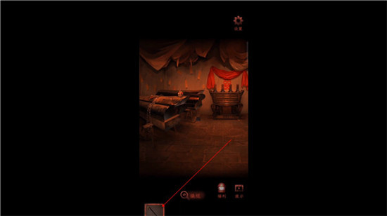6、接着前往灵堂的隔间,此处有一段视频,观看完毕后会发现一条密道,用手帕擦拭墙面。