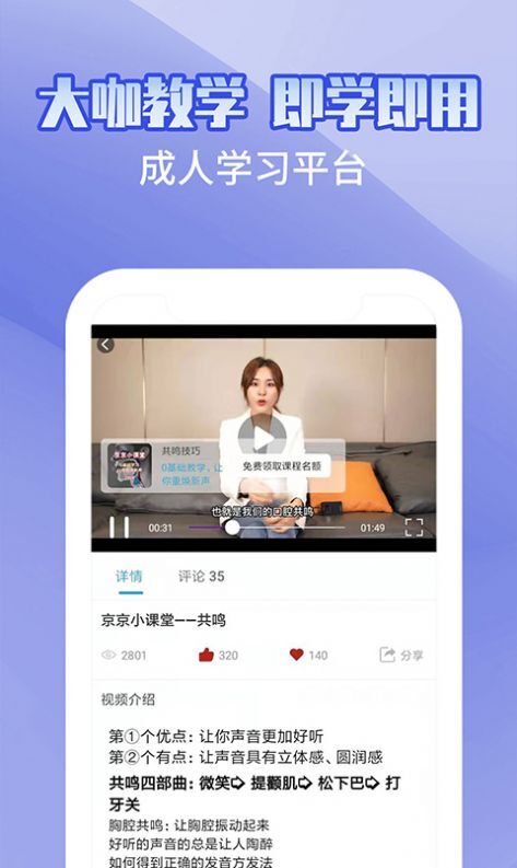 1. 用户在这款软件里能够接触到形形色色的配音教学视频进行学习。