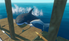 玩家一旦进入水中,鲨鱼就会冲过来进行撕咬,生命值因此会降低。吃东西的同时会补充生命值。