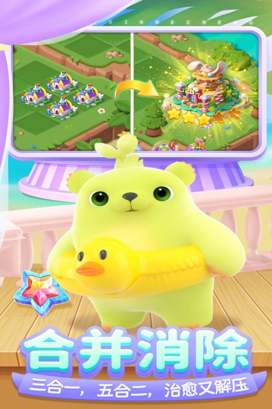 游戏内主要采用三合一、五合二的方式来合成物品,合成方式轻松便捷,游戏新手指引简单易上手,当合成物品的等级越高,获得的奖励就越丰富,而你需要通过合成来触发疗愈屋的建造,清除月障,恢复精灵世界的生机,创建理想家园。