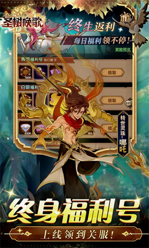 1、开局福利号!!!开局送圣树,首冲月卡全!!!。