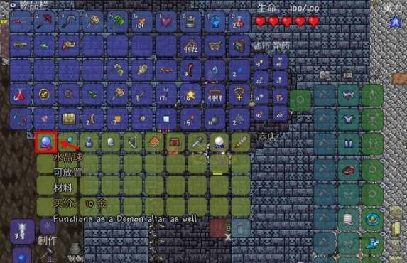 1、在《泰拉瑞亚》游戏里,水晶球属于困难模式物品。当打败肉山后,游戏就会转变为永久困难模式,具体情形如下图所示。