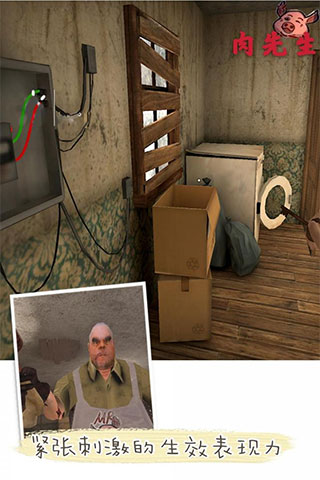 在肉先生1.9.0猪猪女孩中,邪恶的屠夫会正常生活工作,玩家只要不发出声音惊扰他就可以偷偷自如的在房间里活动和寻找,不被发现就不会被追捕。