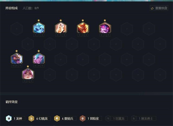 【龙神】提供+3至被标记的羁绊,但需要2个队伍栏位。他们还会获得额外生命值,这个羁绊只会在场上恰好有1个【龙神】时才能激活。