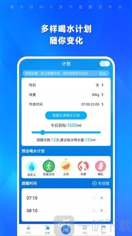 1. 把个人身体信息录入进去,就能轻松浏览到适宜的喝水计划。
