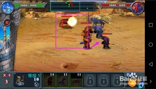 5、战斗策略。不要急于召唤兽王,待对手的兽王接近我方城堡时再应战。将战线控制在我方,有利于新兽王快速加入战斗,形成以多打少的局面,减少兽王的损伤。