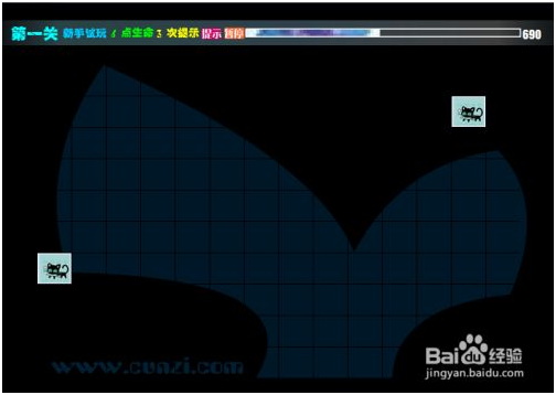 第一关是试玩的,上方的时间条到底了,如果方块还没有清除游戏就结束了