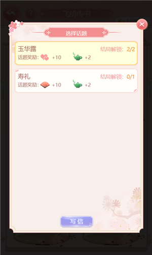 山遥路远,借鸿雁以传书;江头水尾,托游鱼而递笺。小主于闲暇寂寥之际,不妨以书信与知己互通情谊。不同话题,能触发各异剧情,小主的回复亦会导向不同结局。若想解锁更多话题,知悉更多剧情,还需小主于游戏之中持续探索呢~