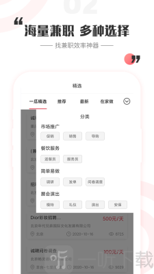 1. 这里提供的职位丰富多样,涵盖家教、技术人员、计时工人以及打字员等,用户能够自由且灵活地进行挑选。